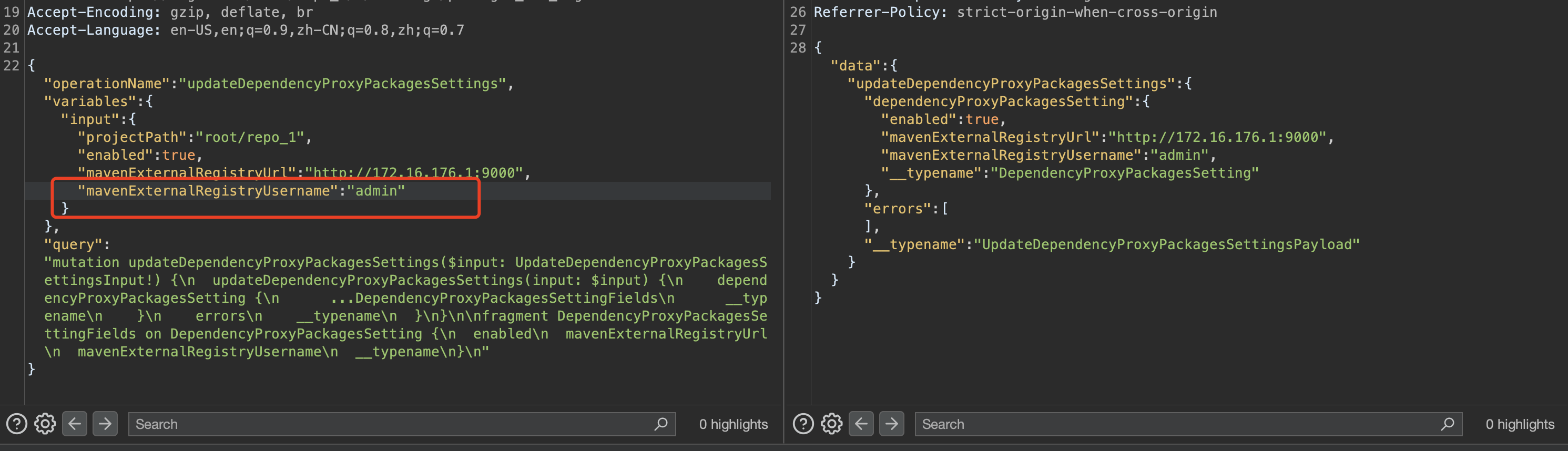 api/v4/projects/<project_id>/dependency_proxy/packages/maven/foo/1/aand watch the backend on<new url>dumping the username and password of (1.).