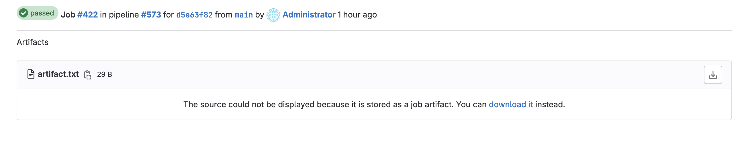 Still, as user B if you try to download the artifact by navigating to: