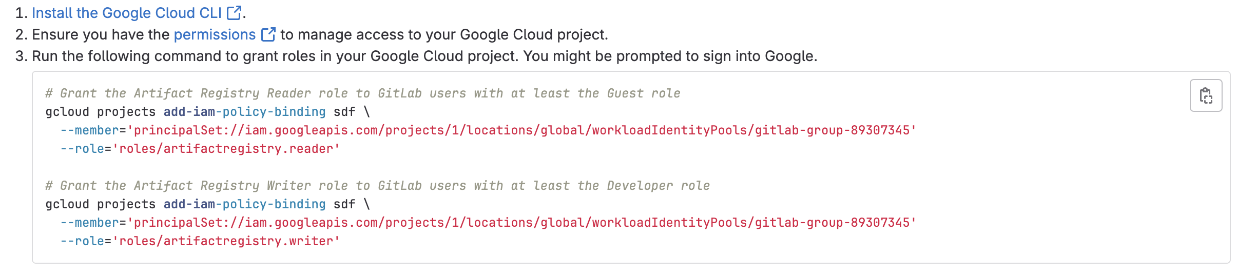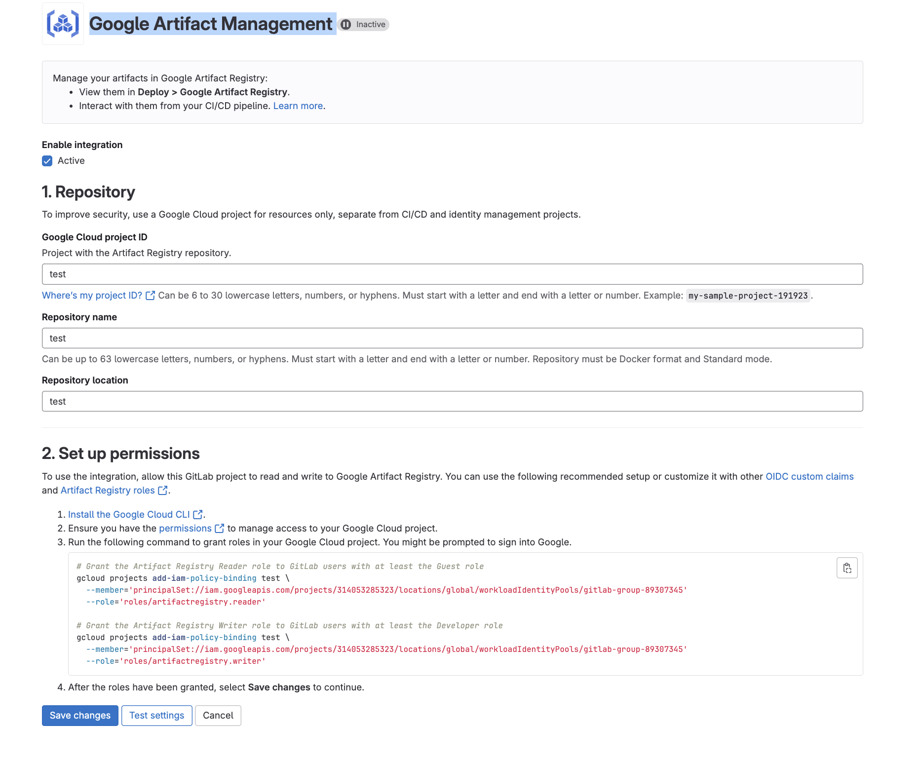 - Now go to https://gitlab.com/GROUPNAME/PROJECTNAME/-/settings/integrations/google_cloud_platform_artifact_registry/edit