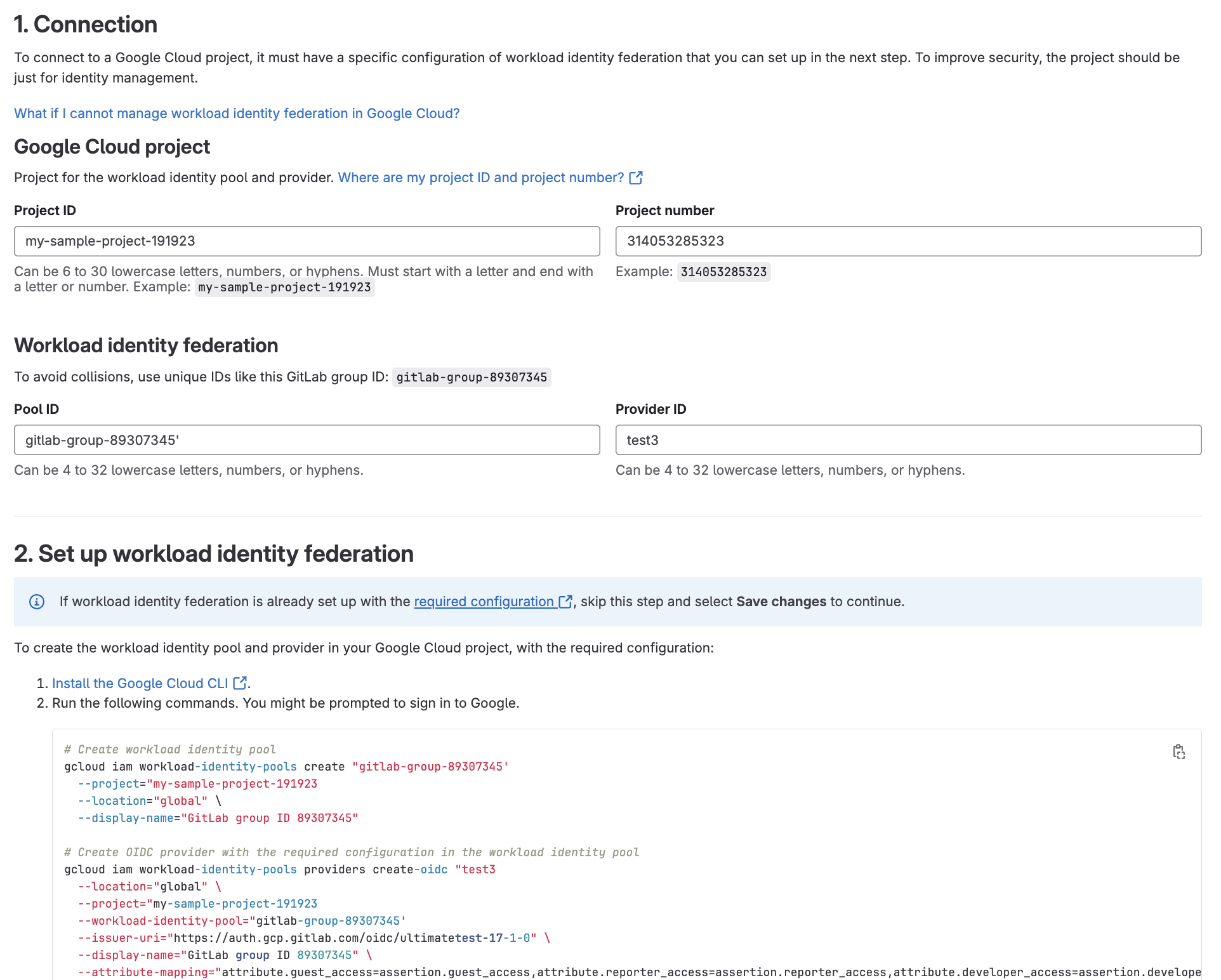attacker - Go to https://gitlab.com/groups/GROUPNAME/-/settings/integrations/google_cloud_platform_workload_identity_federation/edit