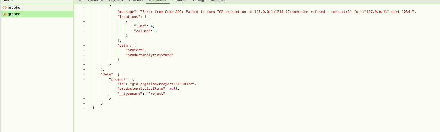 graphqlin the network tab and look for the last one it should contain an error in the response saying that127.0.0.1:1234did not accept a connection. This is as there is nothing running on 1234 - Go back to
