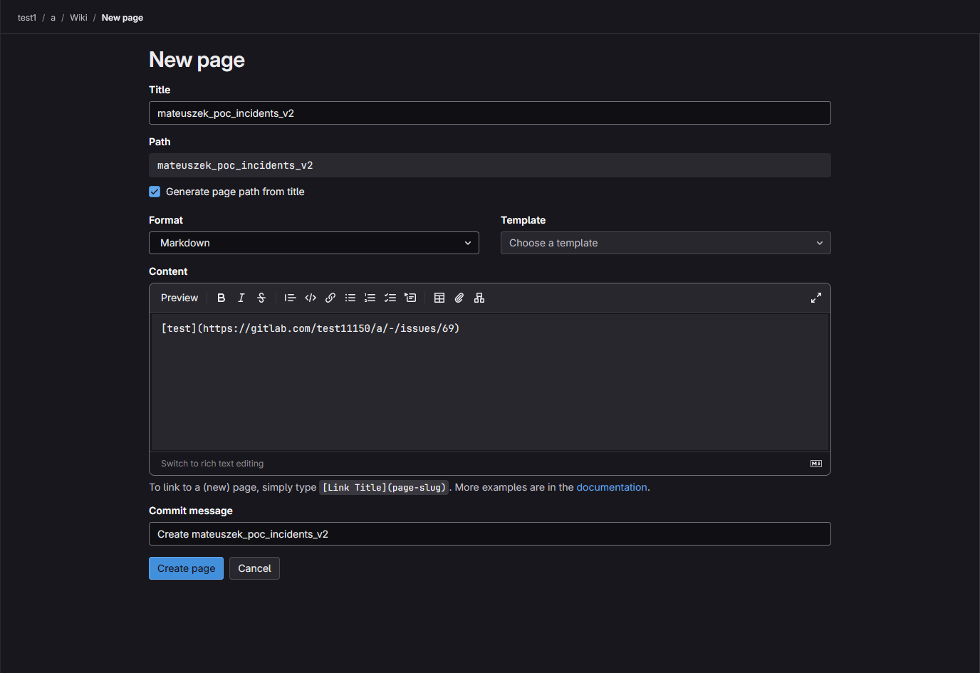 Plan->Issues) - User A - in the PoC private project A create a specific Wiki page (