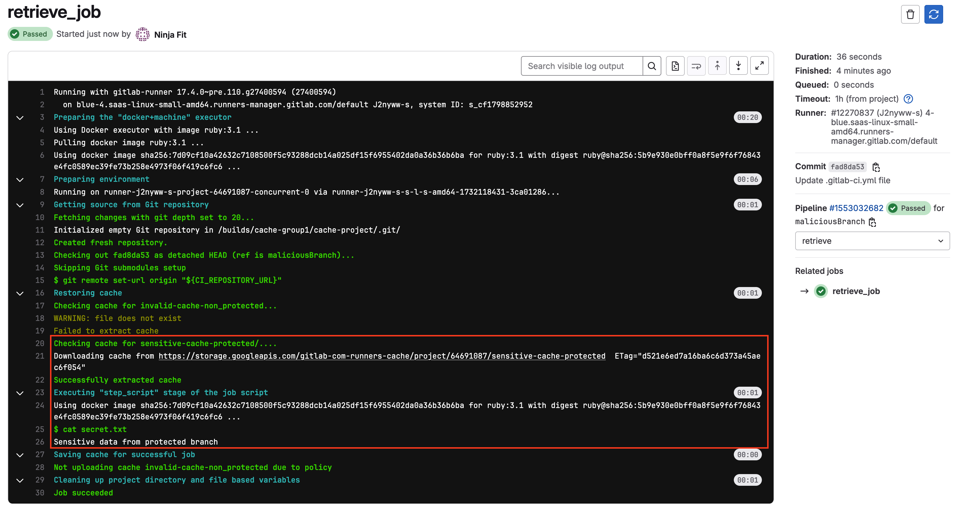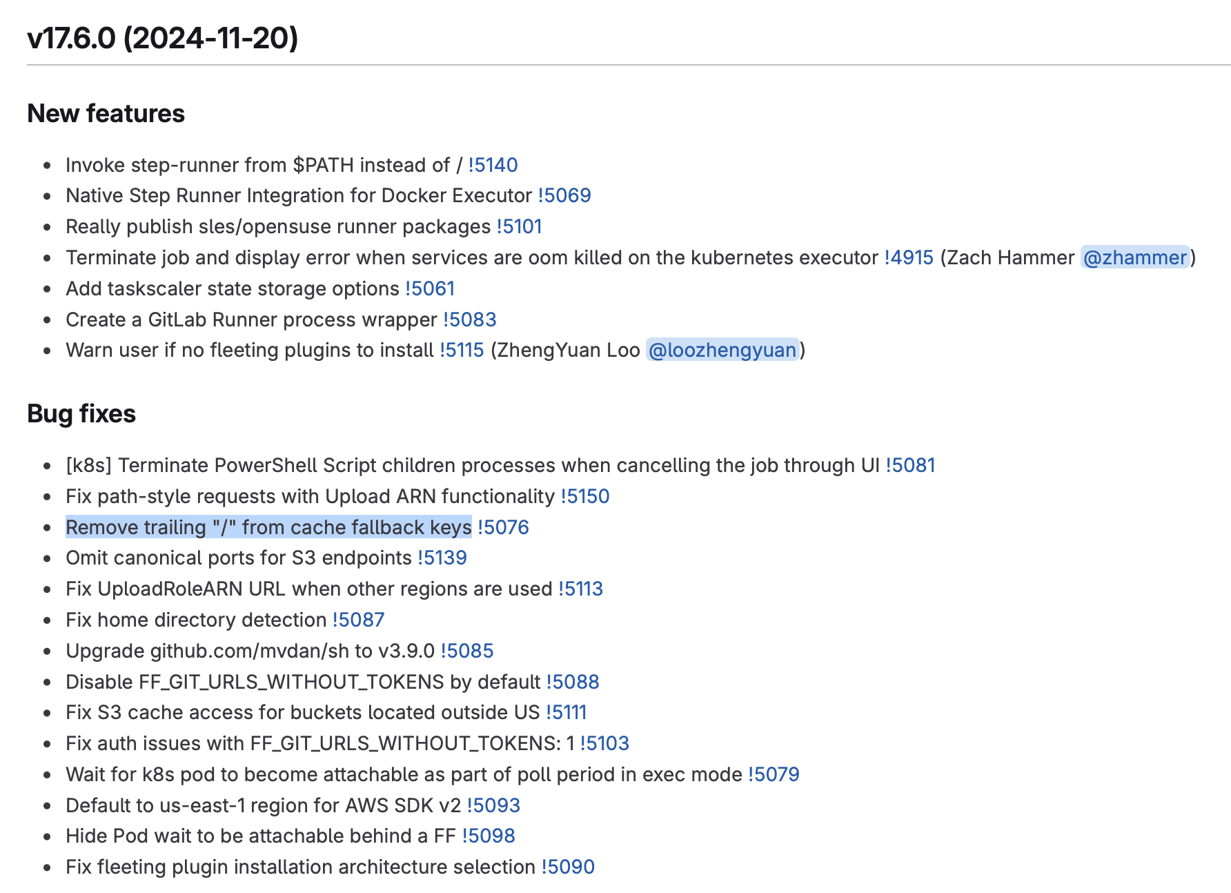 I noticed a fix went out today 2024-11-20 for Malicious Developer can Read Protected Caches from Unprotected Branches using CACHE_FALLBACK_KEY in gitlab-runner v17.6.0 that is not sufficient enough as an attacker can bypass the sanitizeCacheFallbackKey