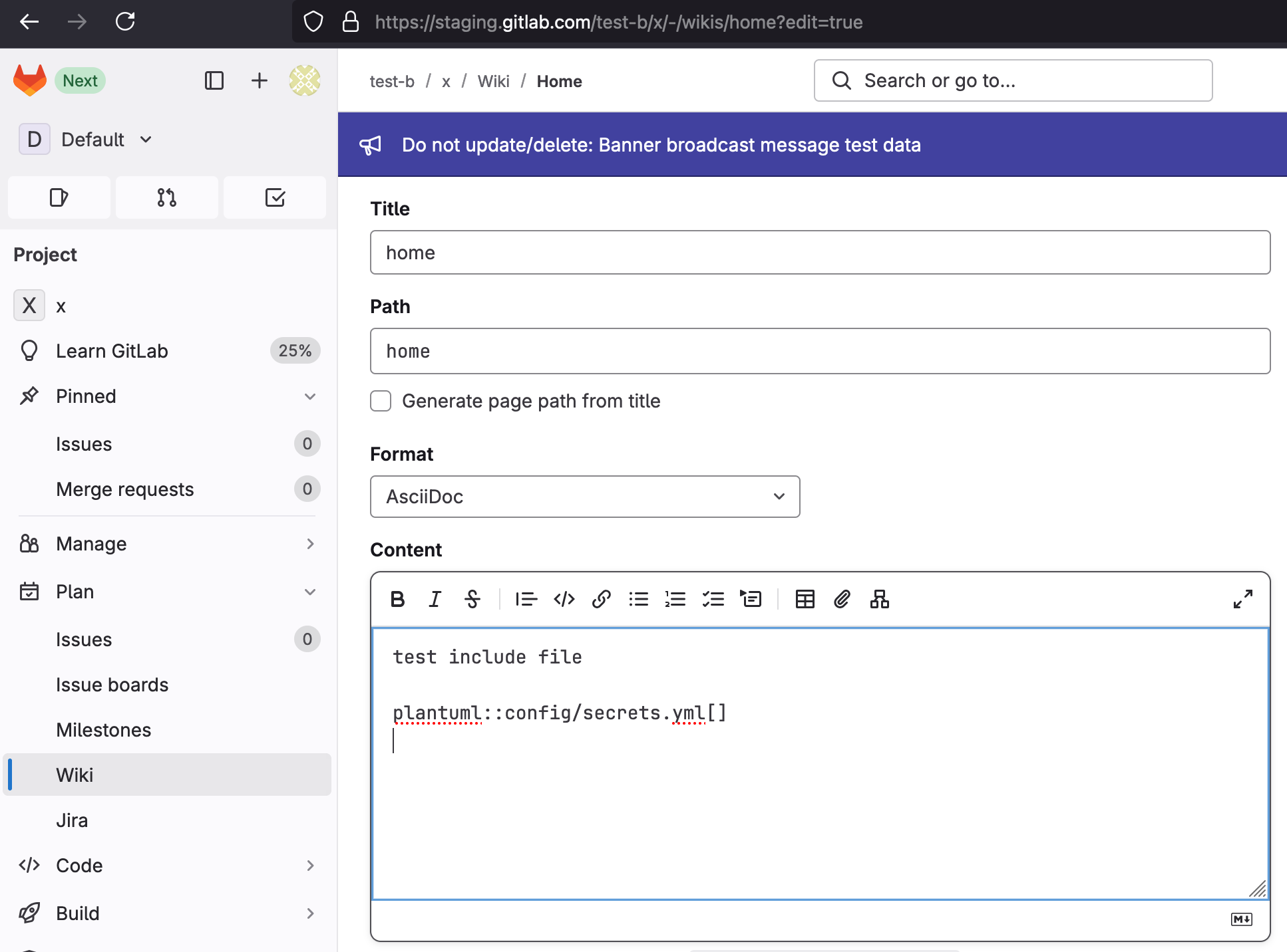 Gitlab rencently uses new version 0.1.1 of asciidoctor-plantuml which enables BlockMacroProcessor by default BlockMacroProcessor. This allows to read arbitrary files.