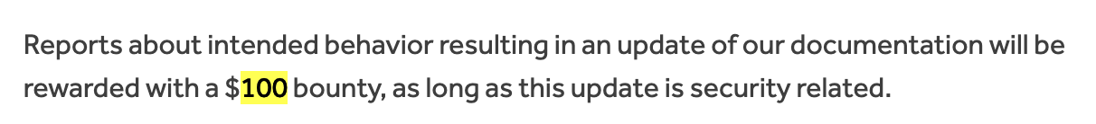 As mentioned above, this is more of documentation error but such security related permission changes in documentation is eligible for reward as per policy, hence reporting it.