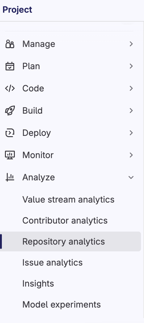4.Directly navigate to project and you should be able to access Repository Analytics which contradicts the documentation