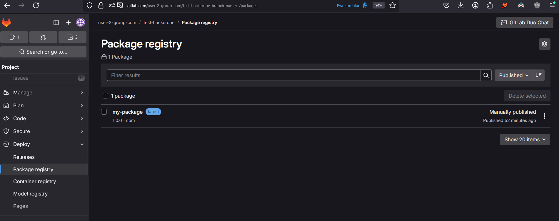 deploy>Package registry, as you can see, the branch name & commit details are hidden