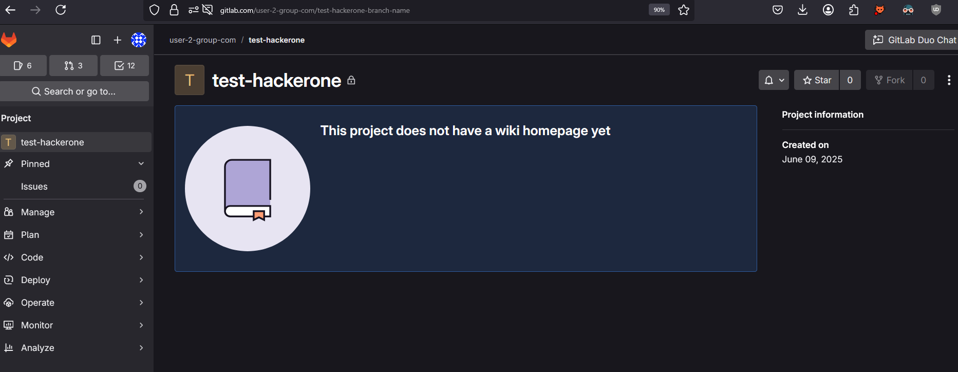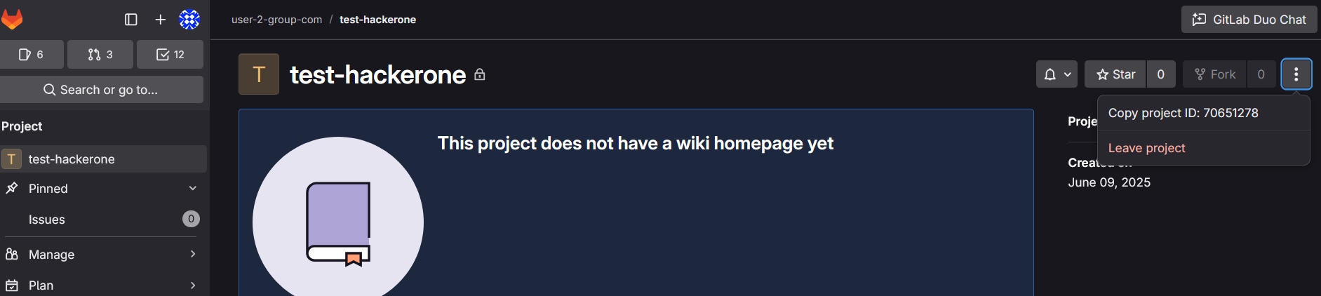 In the group, create a private project called