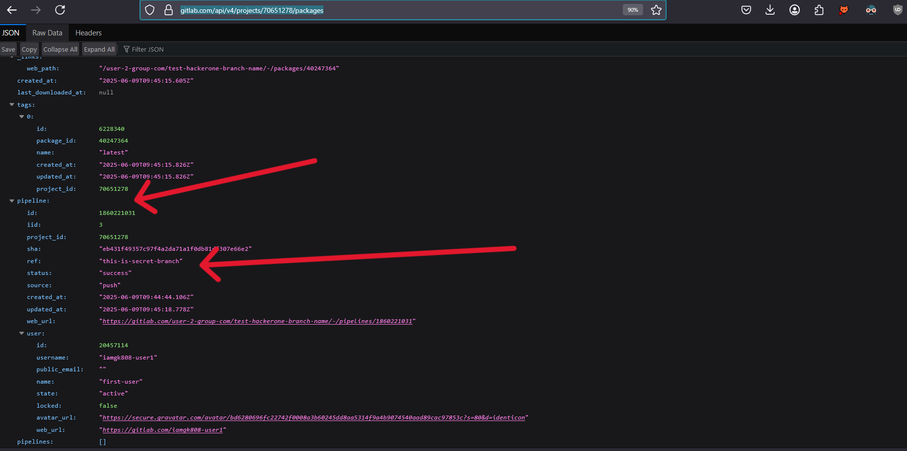 - The attacker can see the branch names and pipeline details