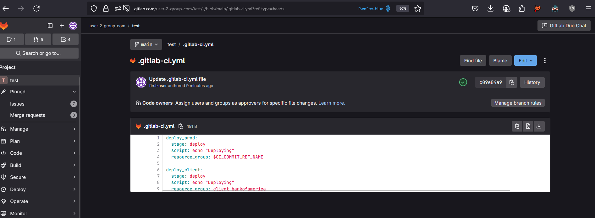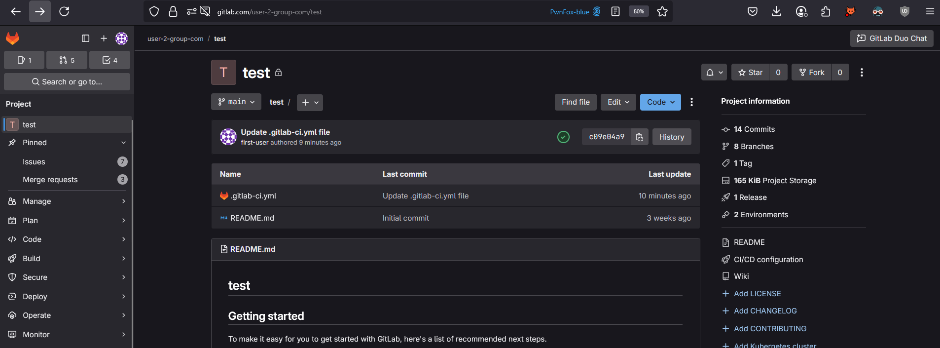 project-1, create a.gitlab-ci.ymlfile with the below content, a pipeline will run
