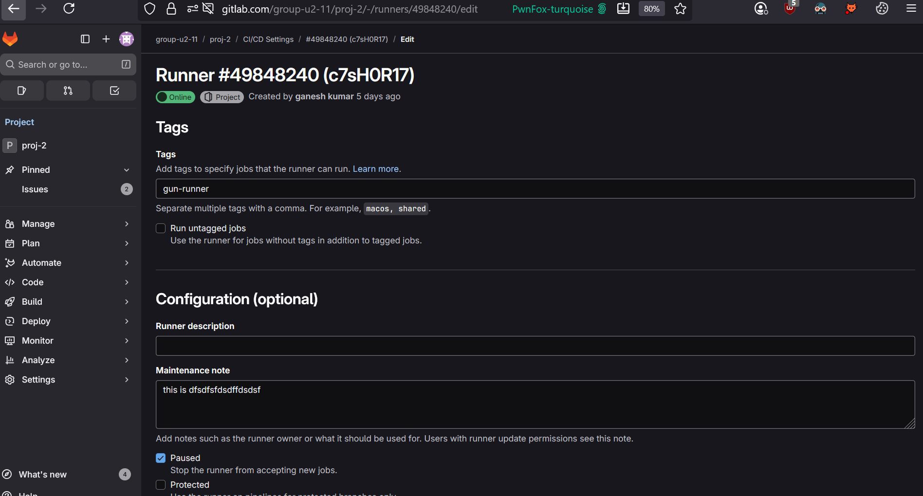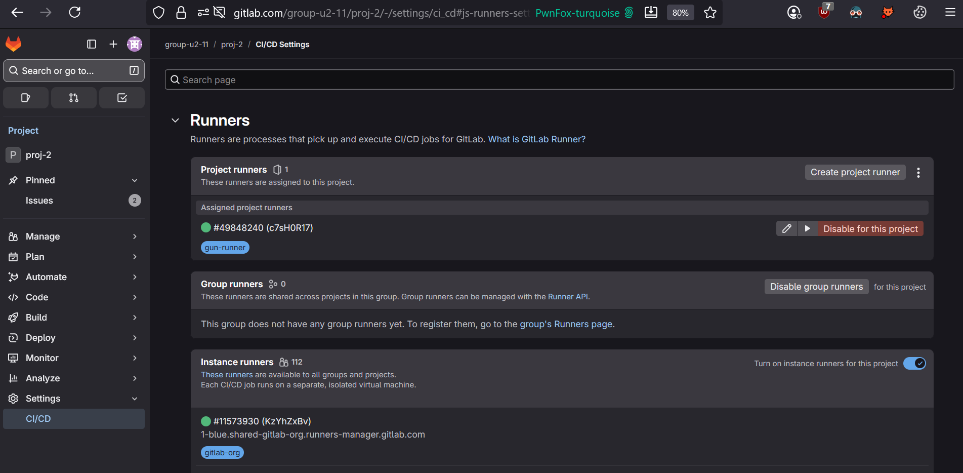 attacker-project-1> ci/cd settings> runners, where you can manage the victim runner like edit, pause, etc...