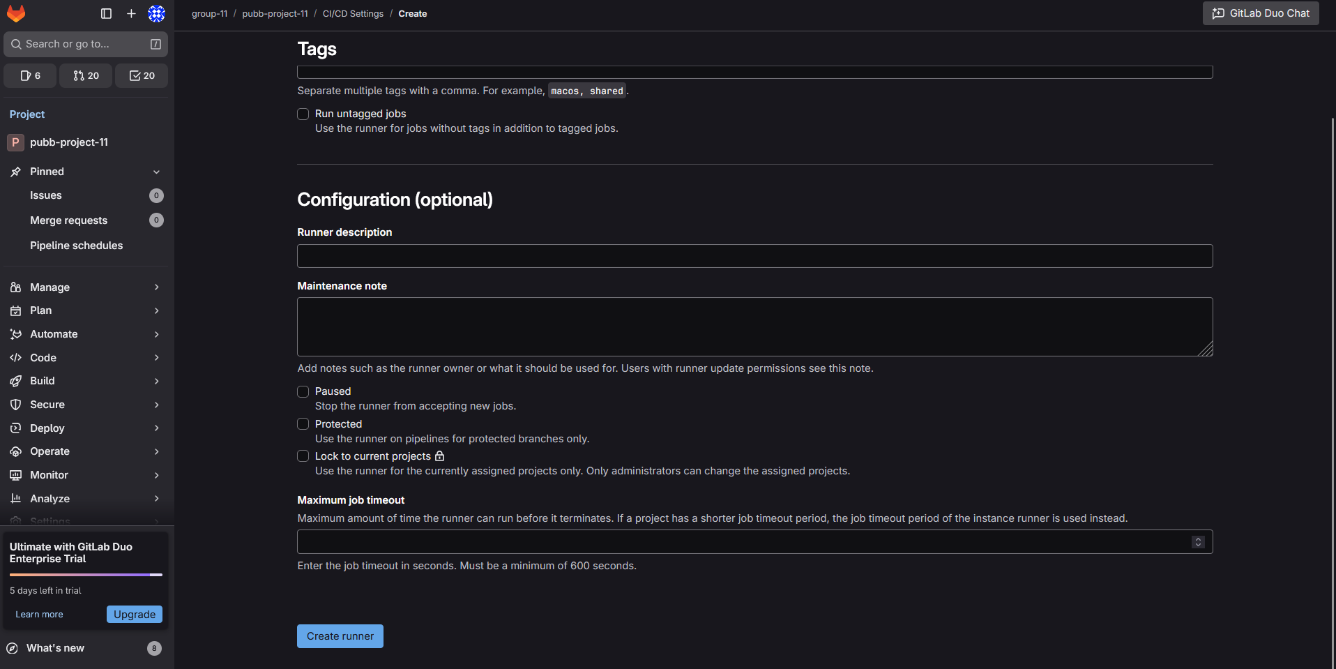 attacker-group-1& apply GitLab Ultimate trial to it -