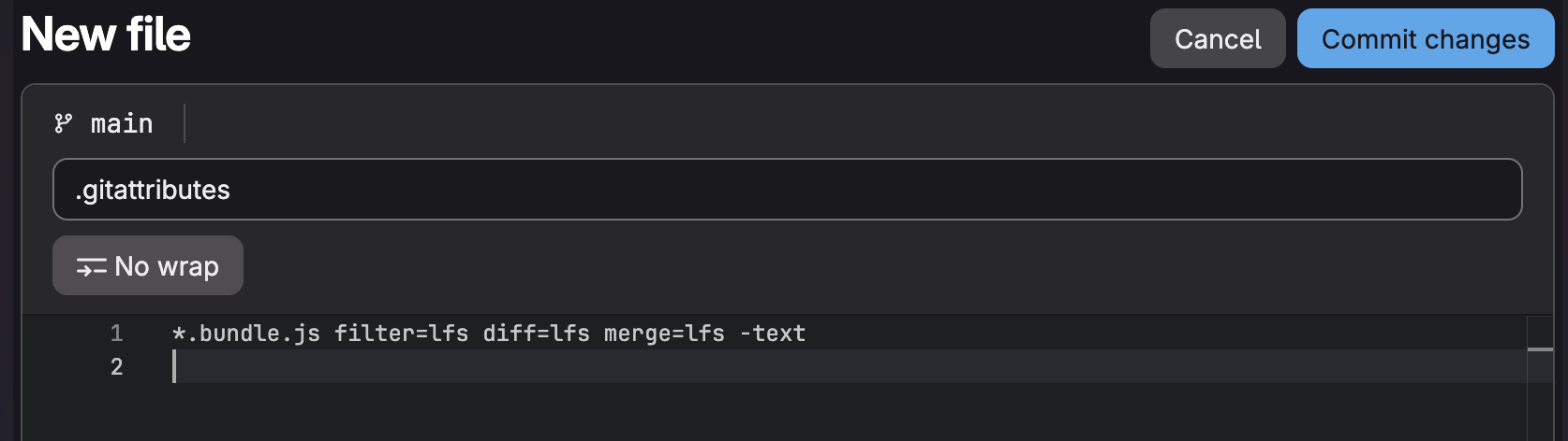 .gitattributesfile to the repository with the following content, then commit:*.bundle.js filter=lfs diff=lfs merge=lfs -text -
