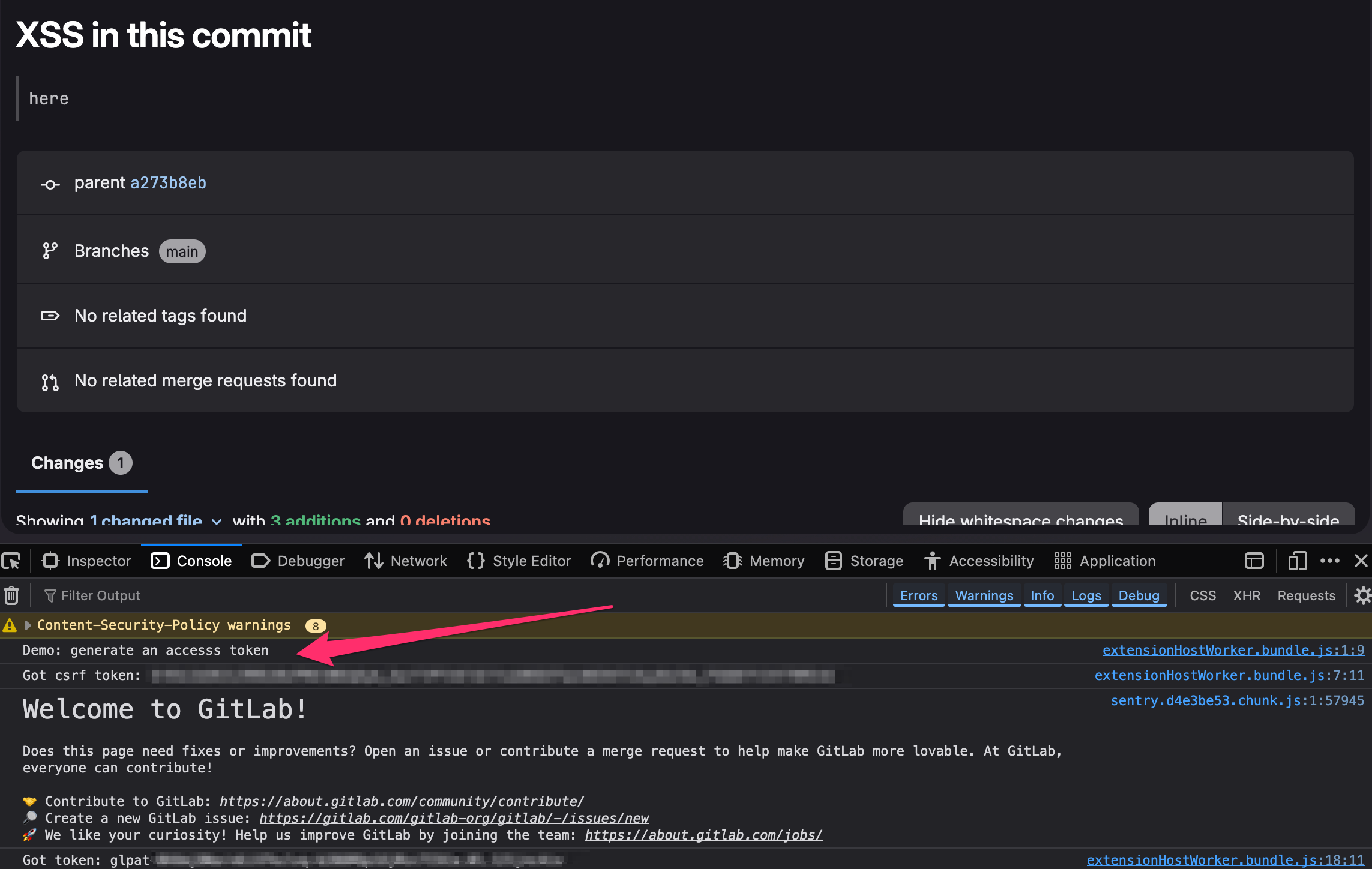 Step 5: The javascript above is executed to create a new personal token as a demo of XSS