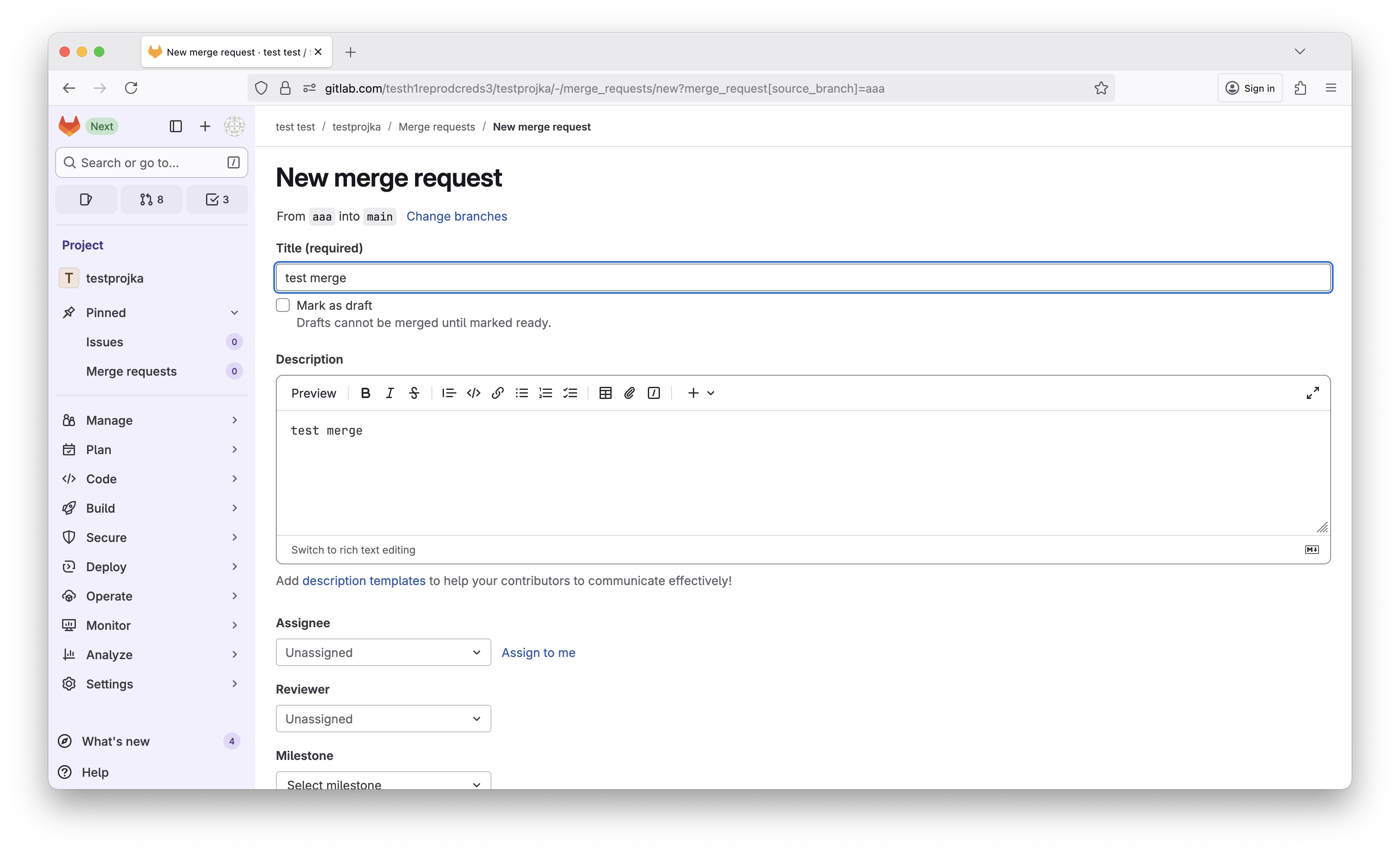 <img src="https://gittlab.com/auth/test.svg"> - Navigate to the MR