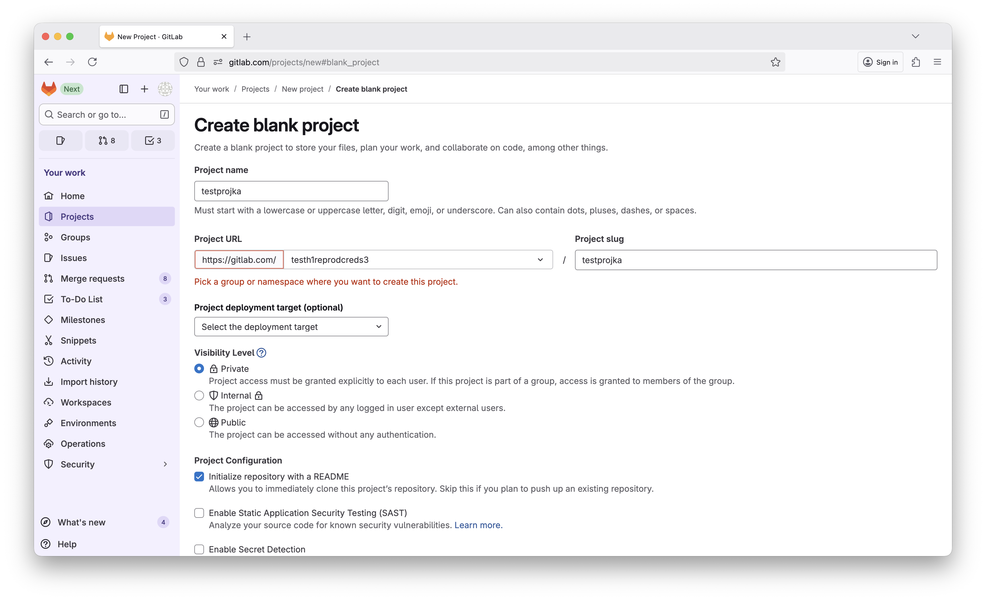 - Log in to GitLab and navigate to any project you own