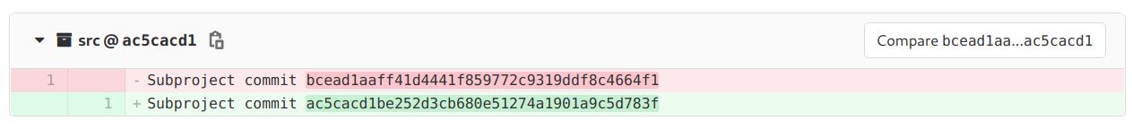 This MR adds a link to the diff view of submodule commits so that the differences can be shown with a single click.