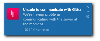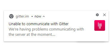 Anytime one of these errors happens, the use gets a Unable to communicate with Gitter, We're having problems communicating with the server at the moment.... notification