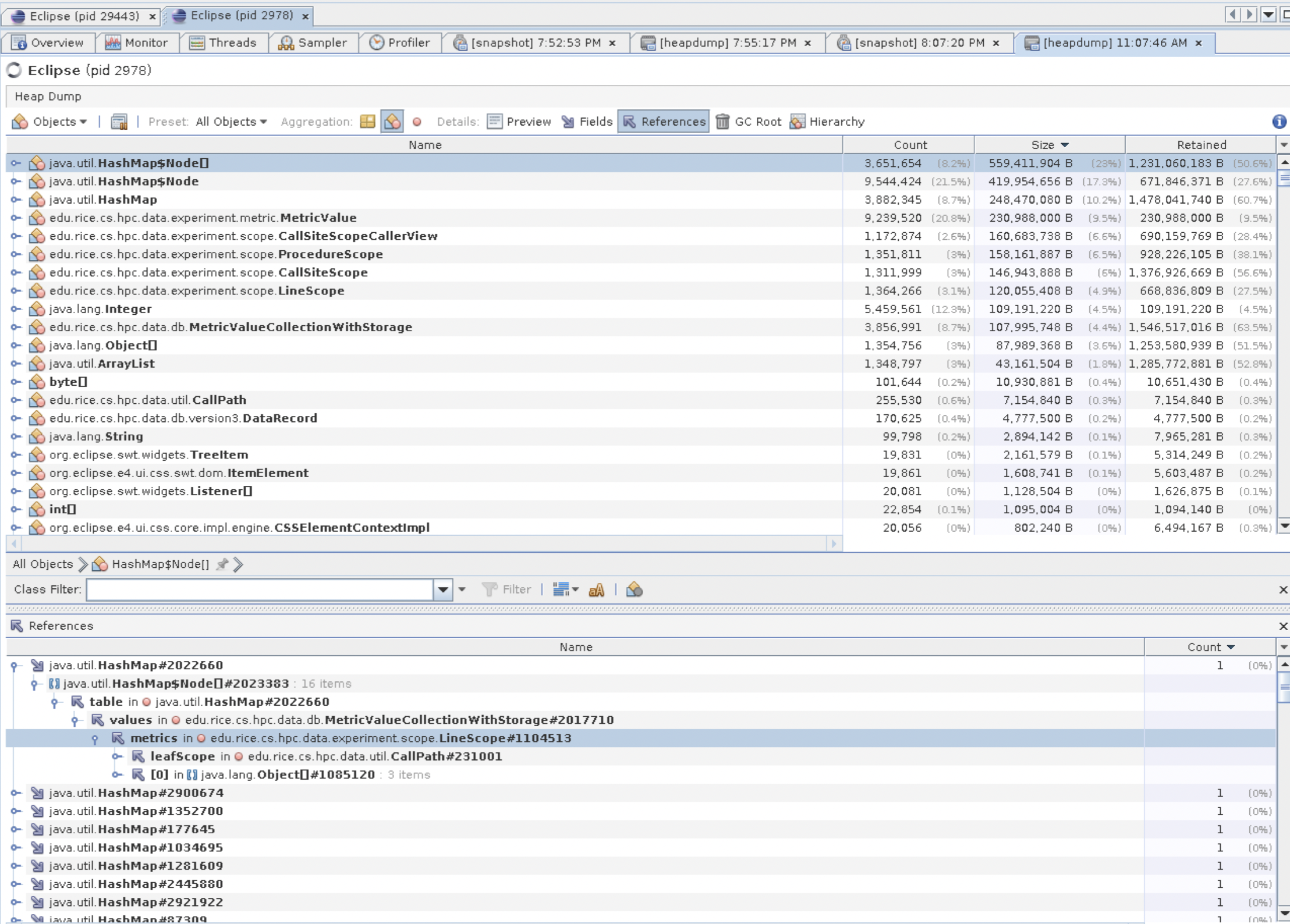 Opening a huge database like DCA++ invokes GC which slow down the app. Using HashMap seems waste a lot of spaces (more than 23% of heap)