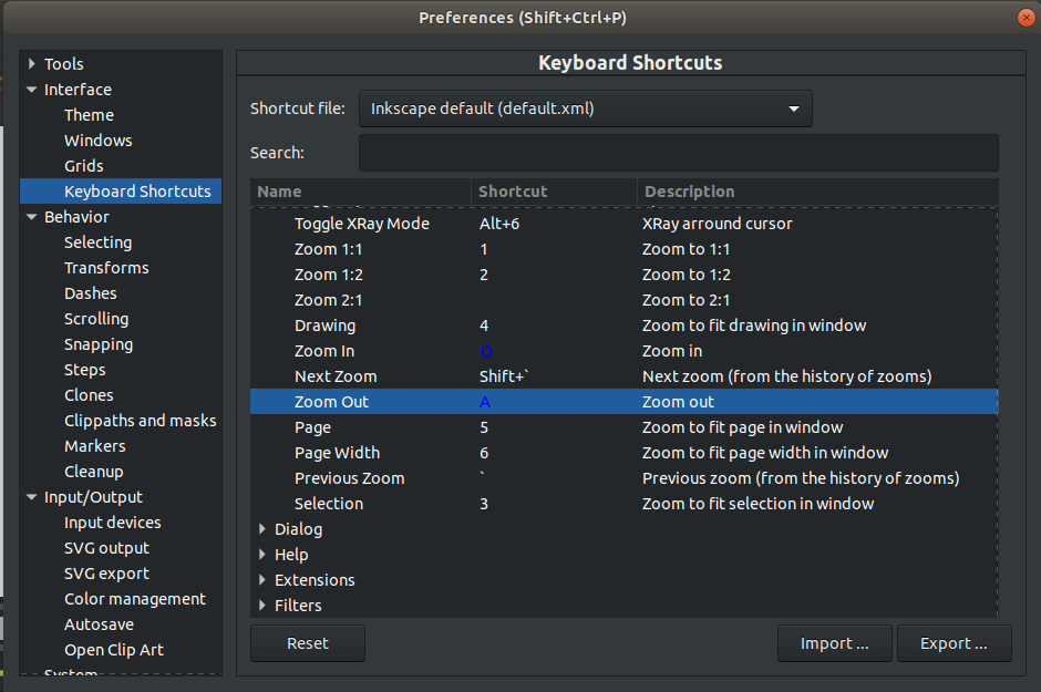 - click menu Edit -> Preferences -> Interfaces -> Keyboard Shortcut