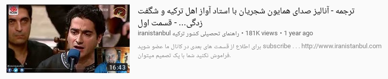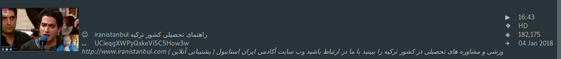 It's now over one year that I use youtube-viewer on a daily basis on different distros. However, I always have issues with Persian video titles that are sometimes not shown. It seems to be due the right to left nature of the language and the length of the titles. For example this is one of the videos from search keyword "همایون شجریان" in gtk-youtube-viewer: