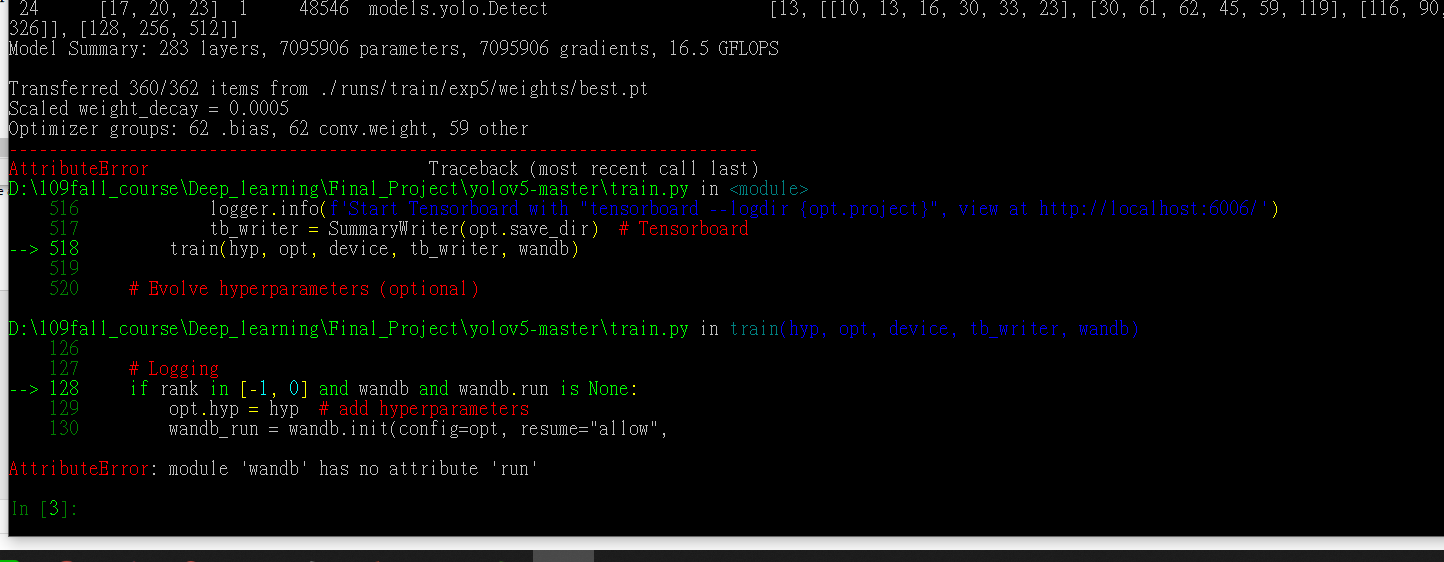 When I use ipython, I just run this [run train.py --epochs 2 --batch-size 32 --data ./data/train.yaml --weights ./runs/train/exp5/weights/best.pt --cfg ./models/yolov5s.yaml ]
