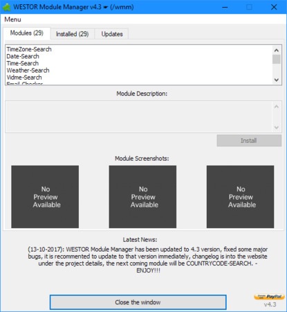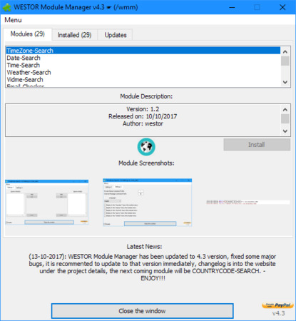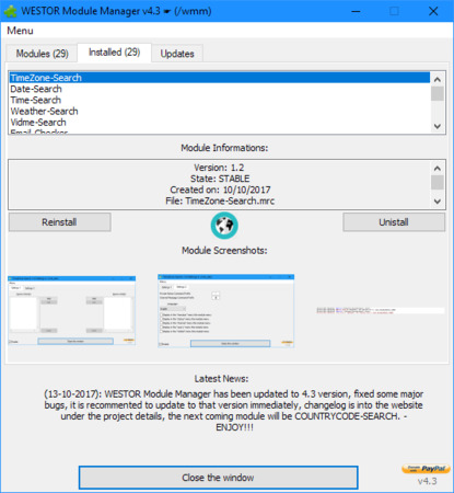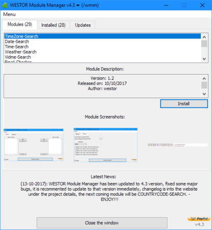 - Added an image that will preview the module icon with that one you have select from the list, if it is installed, if it is installed and you single click on it then you will go move into the Installed tab of the manager to view or manage that module, if you right click then it will open in your browser the module source code page.