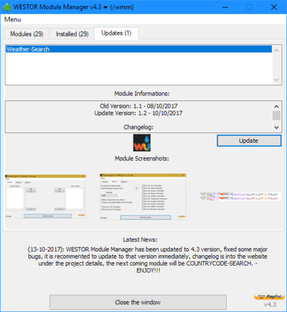 - Added in the manager settings window an total number of the total "Installed Modules" and the total "Auto-Update Modules" to display the total number of each one that are in the list.